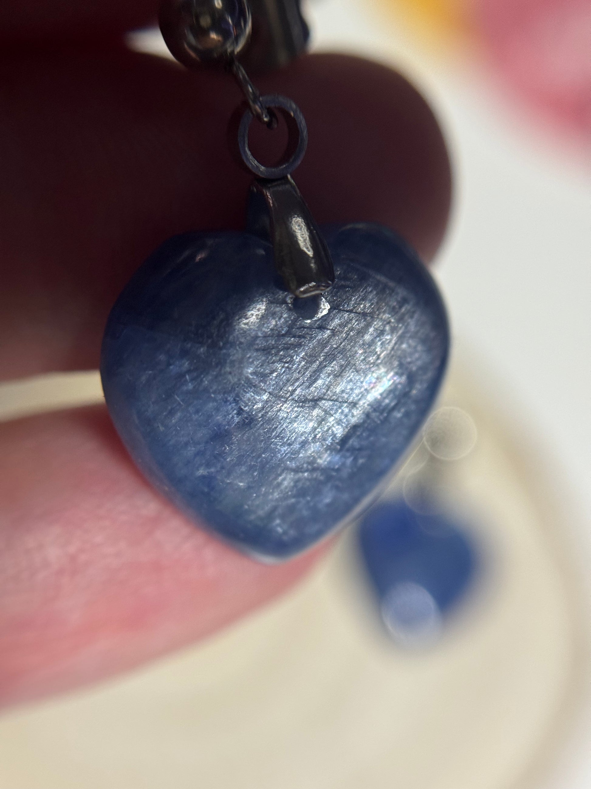 Élégantes et pleines de douceur, ces boucles d’oreilles en forme de cœur mettent en valeur la beauté unique de la cyanite bleue, pierre réputée pour apaiser l’esprit, favoriser la communication et dissiper les énergies négatives. Montées sur acier inoxydable pour allier confort, durabilité et éclat intemporel. 🌸