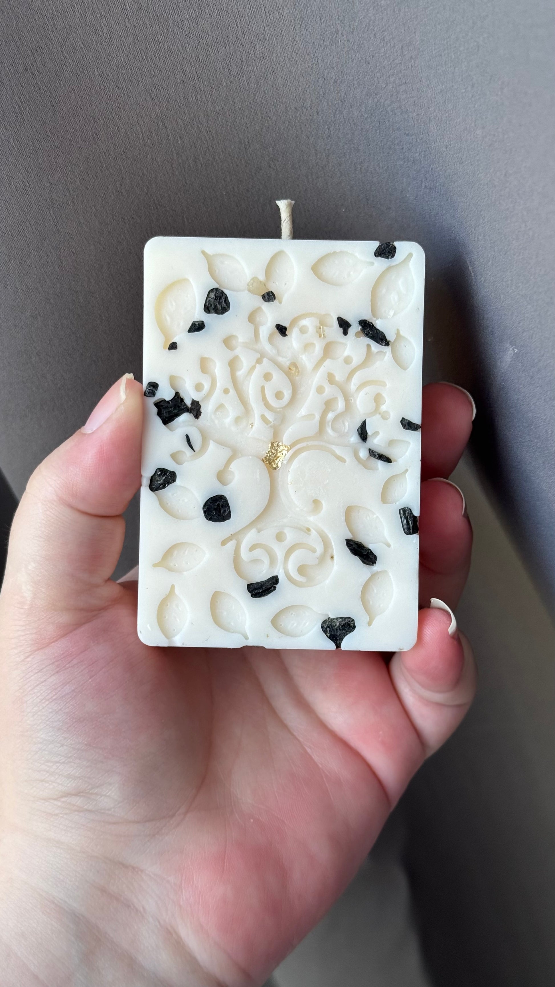 Bougie arbre de vie et éclat de pierres