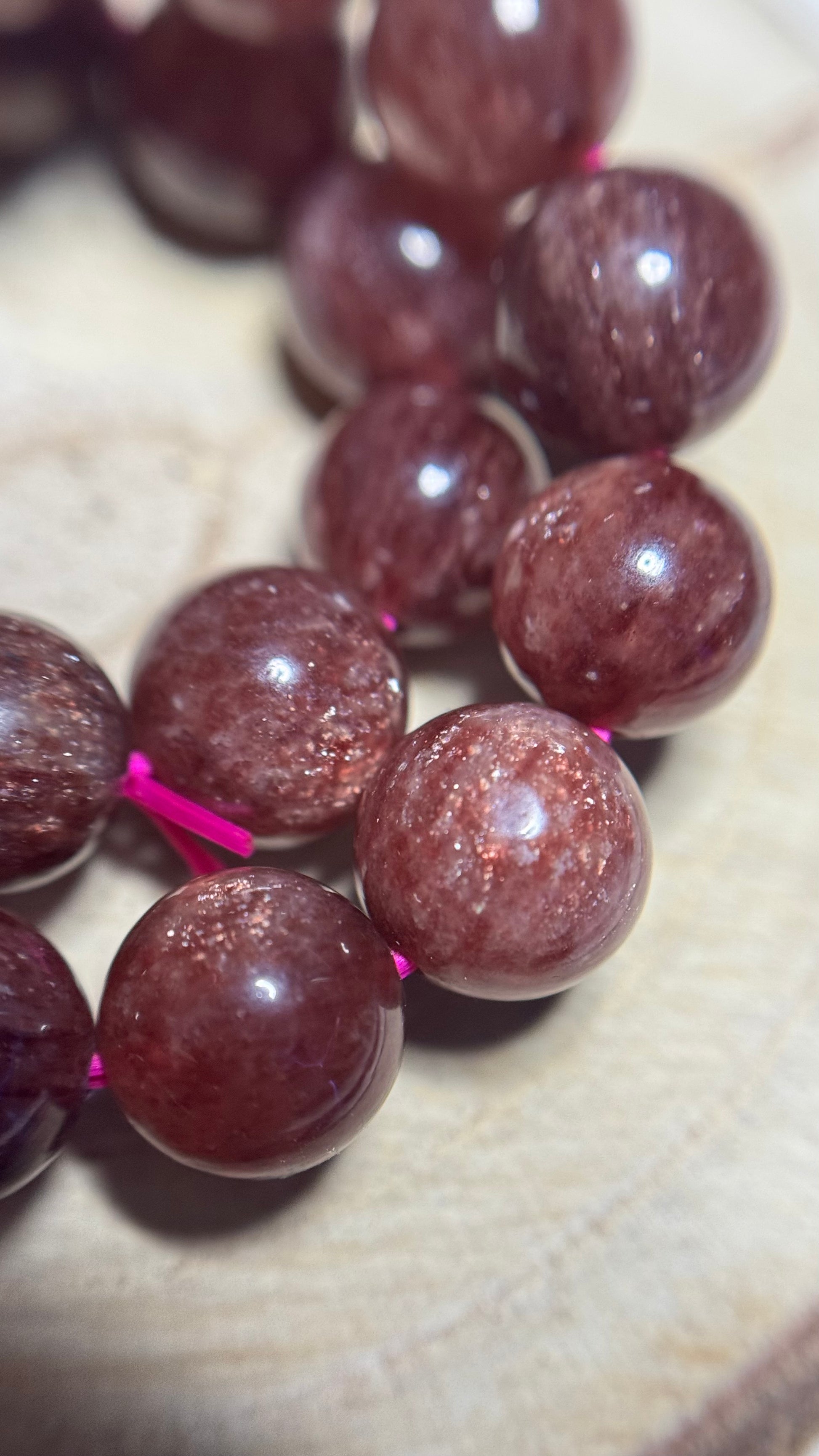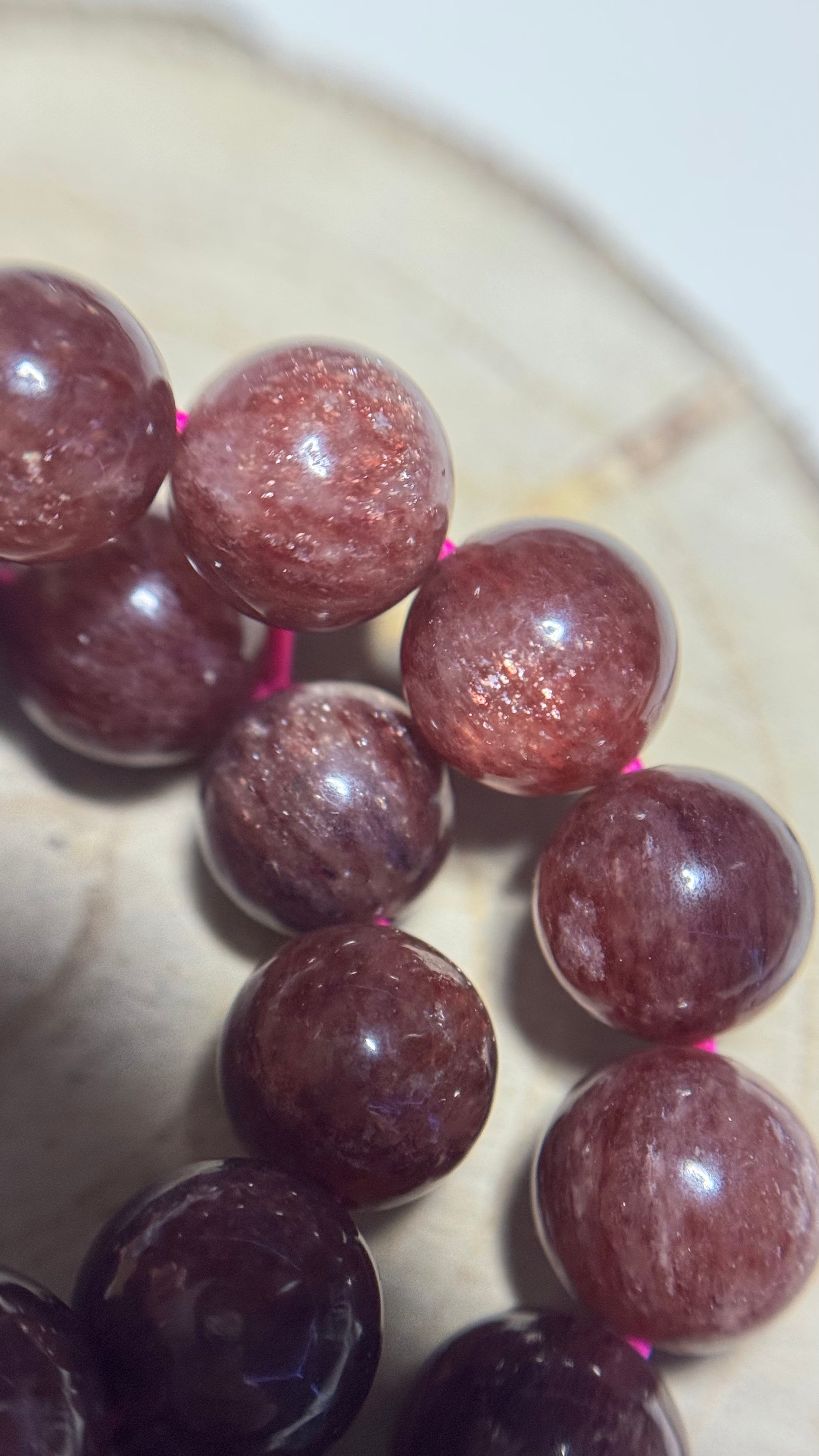 Laisse-toi séduire par la douceur sucrée du quartz fraise, une pierre aussi belle que bienfaisante. Ce bracelet de haute qualité, monté sur un fil élastique doublé pour plus de solidité, est idéal pour attirer l’amour, la tendresse et la joie de vivre.